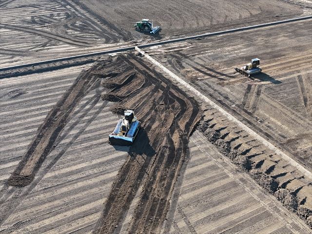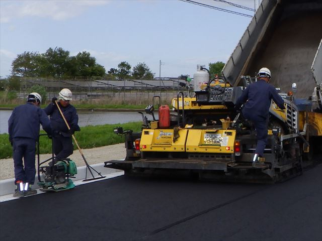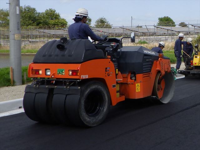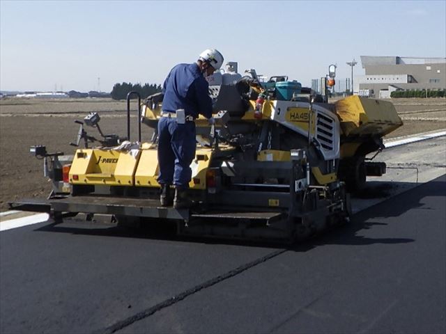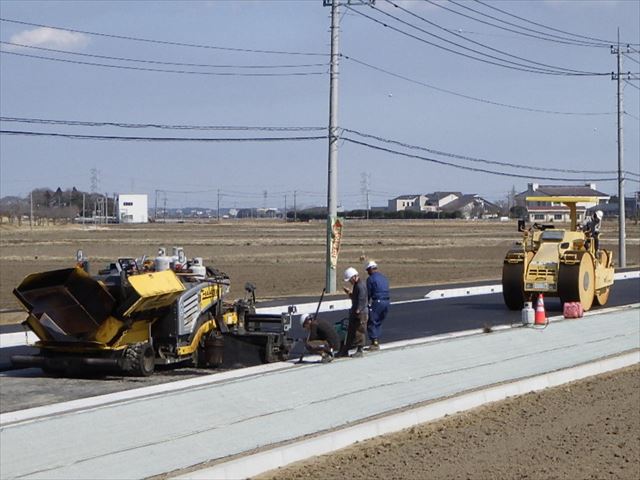 現場管理の仕事です。道路舗装工事、上下水道工事、土地造成工事、農地土木工事など、公共工事を主にした現場管理で、現場は稲敷市・龍ケ崎市が中心となります。